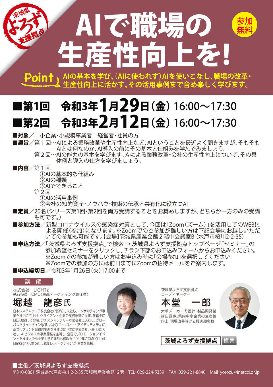 「AIで職場の生産性向上を!」 茨城県よろず支援拠点 ミニセミナー登壇のお知らせ