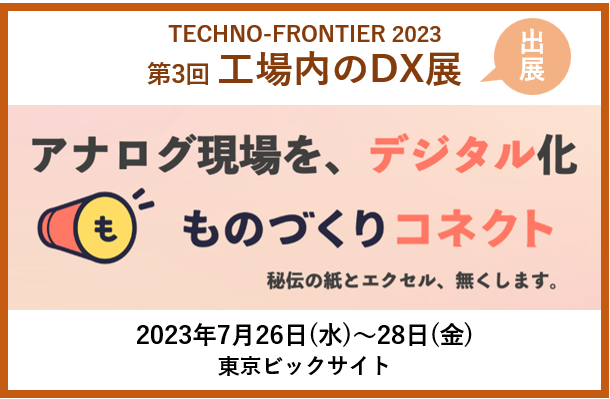 この度弊社は、TECHNO-FRONTIER 2023 第3回 工場内のデジタルトランスフォーメーション(DX)展に出展いたします。