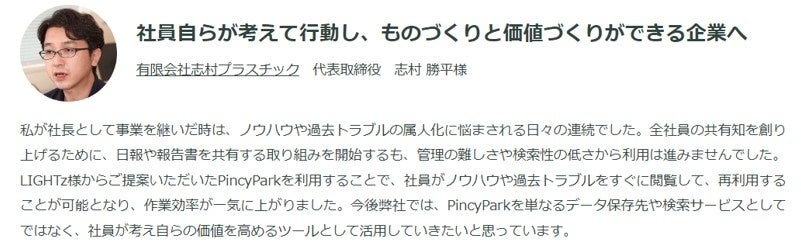 株式会社LIGHTz(本社:茨城県つくば市、代表取締役社長:乙部信吾、以下LIGHTz)はナレッジマネージメントの問題を解決するノウハウ活用サービス「Pincy Park(ピンシーパーク)」の提供を2022年10月3日(金)8:00より開始しました。